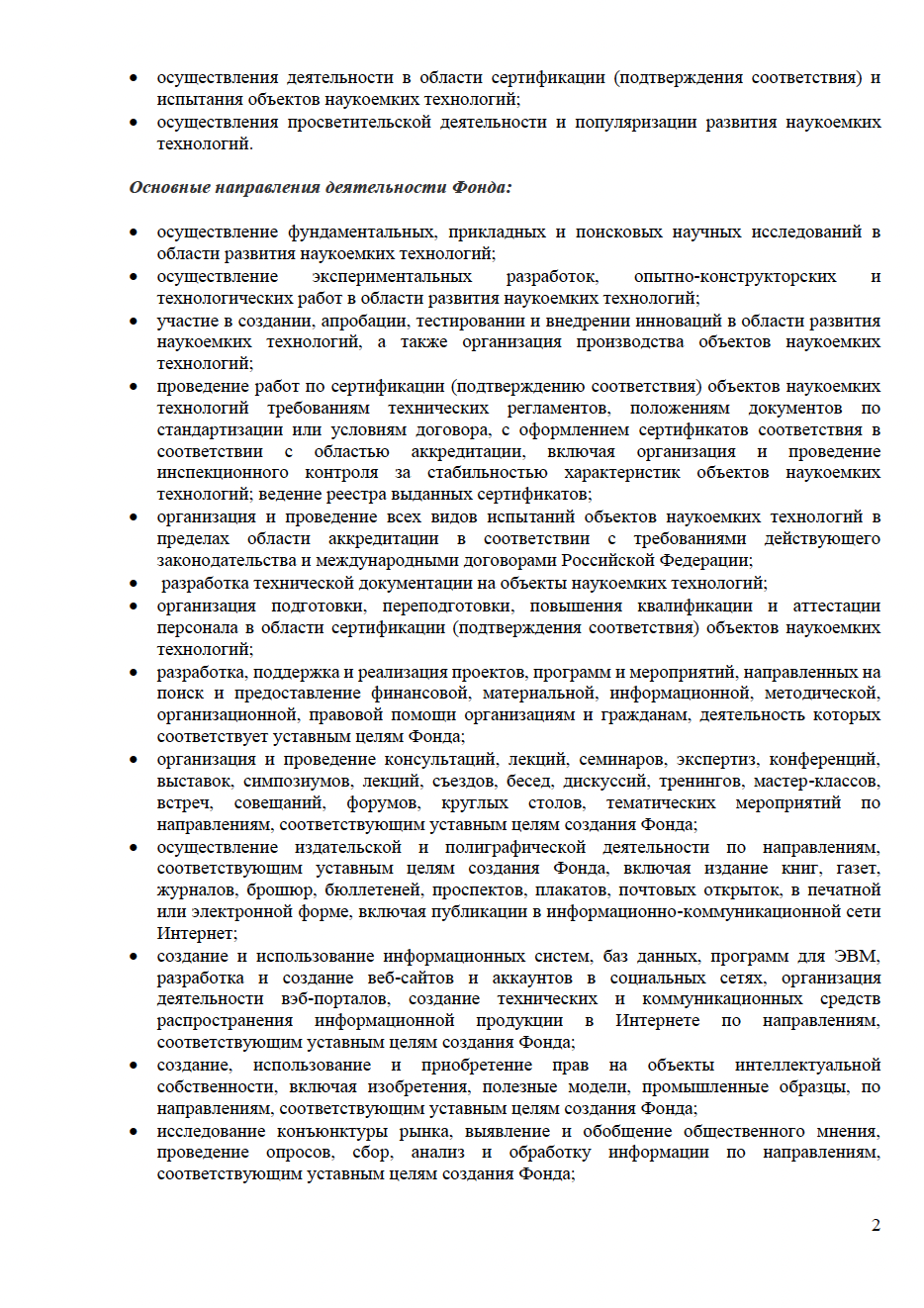 • осуществления научной и инновационной деятельности в области развития наукоемких технологий;